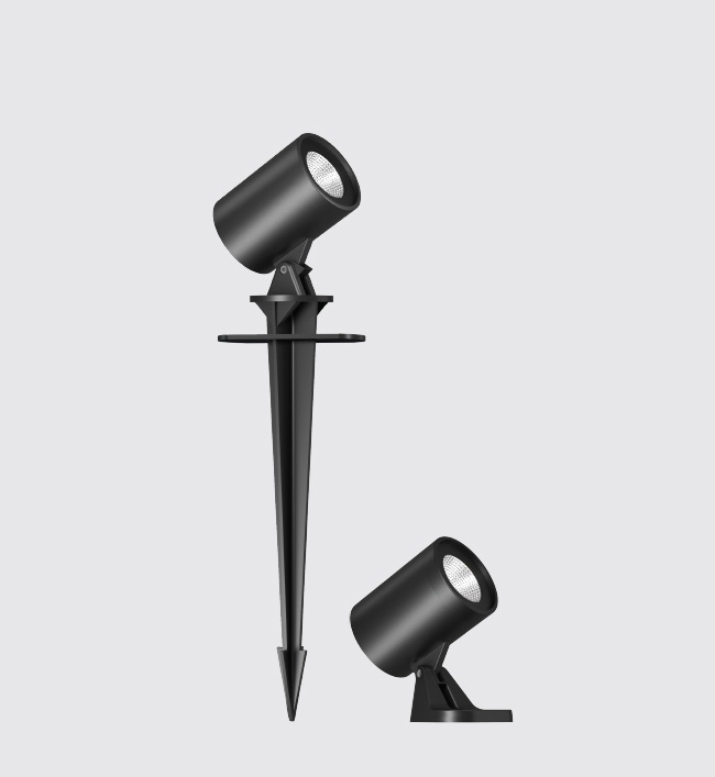 LED compact spot light luminaires designed to provide directional light. The luminaires comes with a connecting cable and an earth spike for portable installation or bracket for permanent installation on a wall, under a ceiling or on a column.