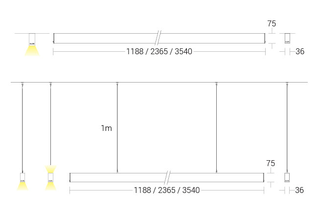 • Supplied with standard suspension kit (1metre).