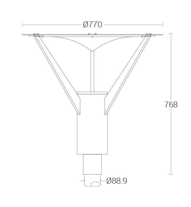 Mounting : Die cast aluminium base suitable for mounting on 88.9mm OD pole.