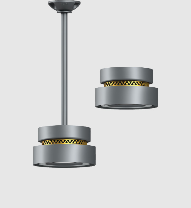 "Iyra" pendant and surface-mounted LED ceiling luminaires is the ideal choice for a variety of lighting applications. These fixtures feature high-quality LED sources that offer low energy consumption and an extended service life. Designed to perform at high mounting height, these luminaires are perfectly suited for installation in a wide range of ceiling types-indoors and outdoors.