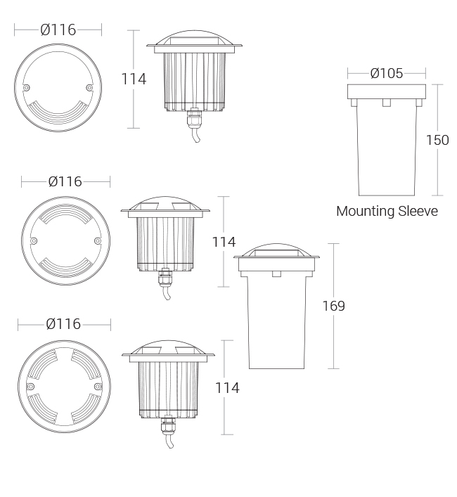• Supplied with mounting sleeve for preparing recessed opening in ground or wall.